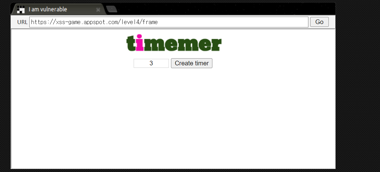 위에서 말한 코드에 XSS 구문을 삼입하려면 위에 타이머 값을 이용해야 함을 볼 수 있다