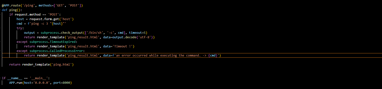 return render_template('ping_result.html', data=f'an error occurred while executing the command. -> {cmd}')