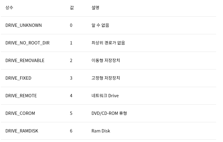 먼저 문제인 GetDriveType이 무엇을 나타내는지 먼저 찾아봐야 할 것이다.