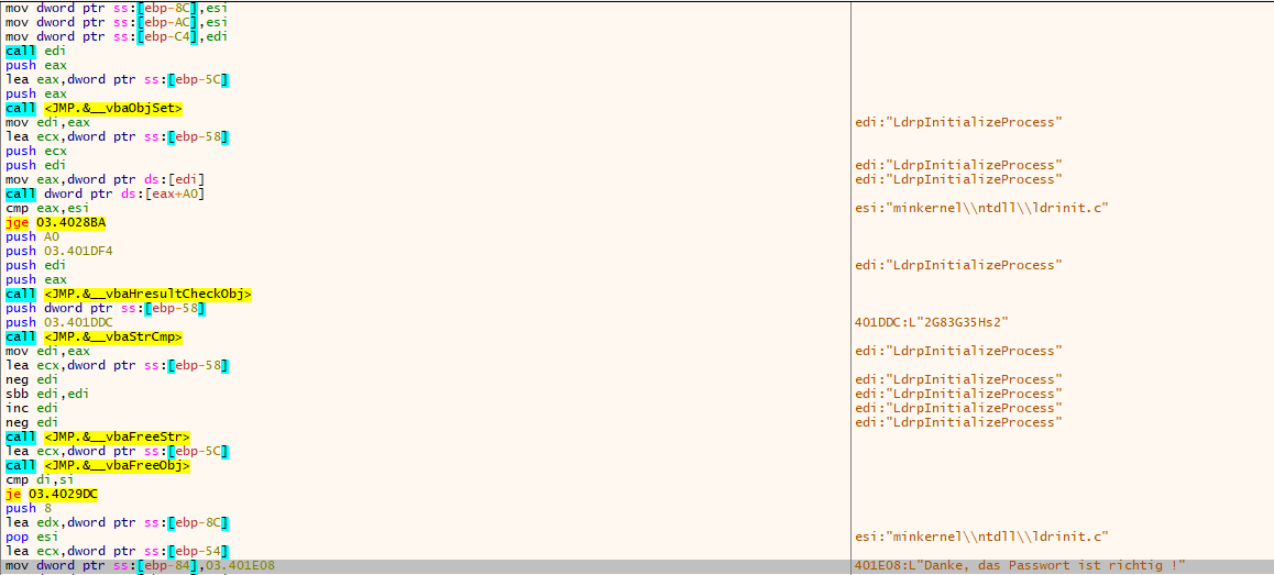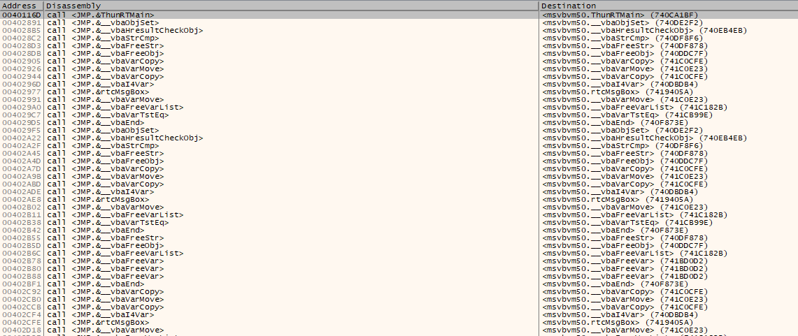 이쪽일 거다. 위와 같이 보면 Call <JMP . &_VbaStrCmp > 가 굉장히 수상해 보인다.