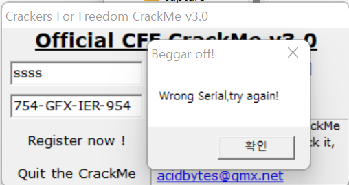 시리얼 키를 치는 프로그램이며 다음으로 X32dbg로 해당 프로그램을 열어보자.