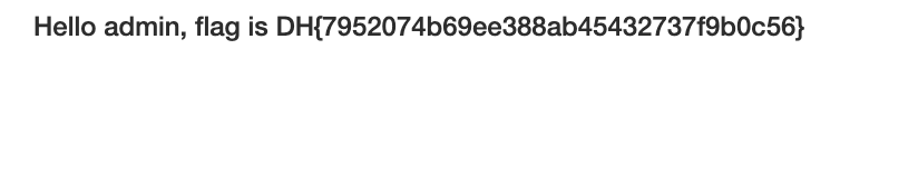 return render_template('index.html', text=f'Hello {username}, {"flag is " + FLAG if username == "admin" else "you are not admin"}')